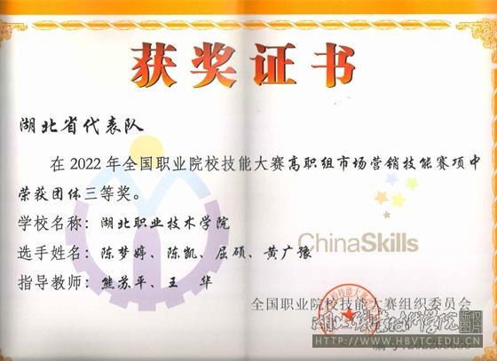 8月25日至26日,“中银杯”全国职业院校技能大赛高职组市场营销技能赛项在甘肃兰州举行,来自全国各省市自治区的56支代表队、222名选手同台竞技、交流互鉴,由yL23411永利集团yl23411永利集团熊苏平、王华老师指导,yL23411永利集团市场营销专业黄广豫、陈梦婷、陈凯、屈硕同学代表湖北队参赛荣获团体赛三等奖的好成绩。