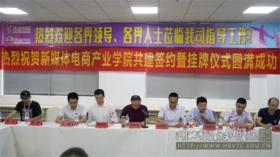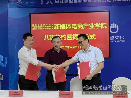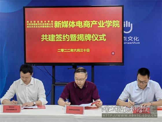 6月30日,新媒体电商产业学院(以下简称产业学院)签约暨揭牌仪式在南校区天工楼顺利举行,产业学院由学校与中联集团教育科技有限公司、湖北冰点文化传播有限公司共同建设。学校副校长胡昌杰,中联集团教育科技有限公司副总裁冯学平,湖北冰点文化传播有限公司总经理熊传兵及学校相关职能部门负责同志、财经学院师生代表等出席,揭牌仪式由财经学院院长徐斌华主持。