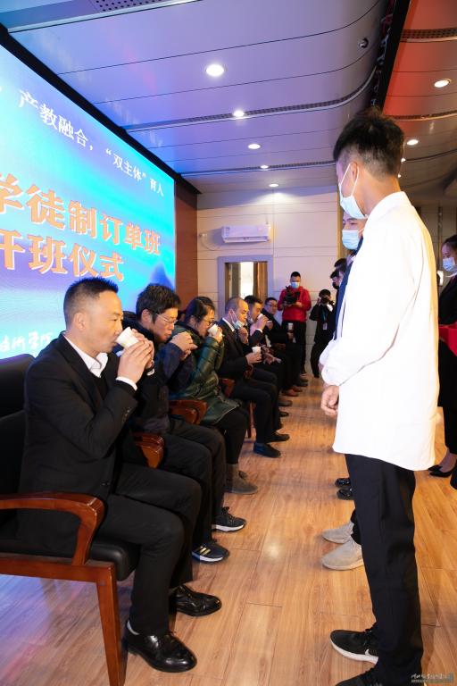 期间,还进行了师徒代表宣誓,老师(师傅)向学生(徒弟)回赠礼等活动。