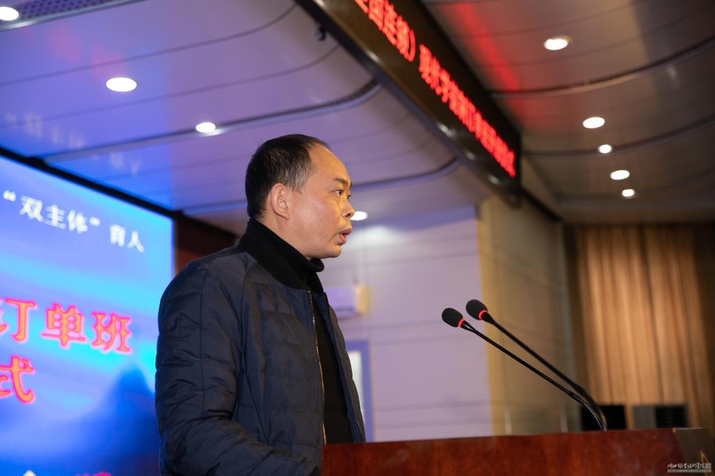 徐斌华从校企合作历程、订单班培养模式和特色等方面进行了情况介绍。校企共同制定人才培养方案,共同设计“模块化”课程体系,共同制定专业标准、课程标准及教学计划,双方互相支持、互相渗透,企业师傅和校内导师双向介入共同开展“双师”育人的人才培养模式。体现学校和企业育人“双主体”,老师、师傅“双身份”,学生、徒弟“双角色”,课堂和工作现场“双环境”,学生就业“双选择” 的鲜明特色。财经学院将坚持创新驱动发展,严格落实相关协议内容,抓好过程管理,把“匆忙客订单班”打造成学校样板和示范项目。