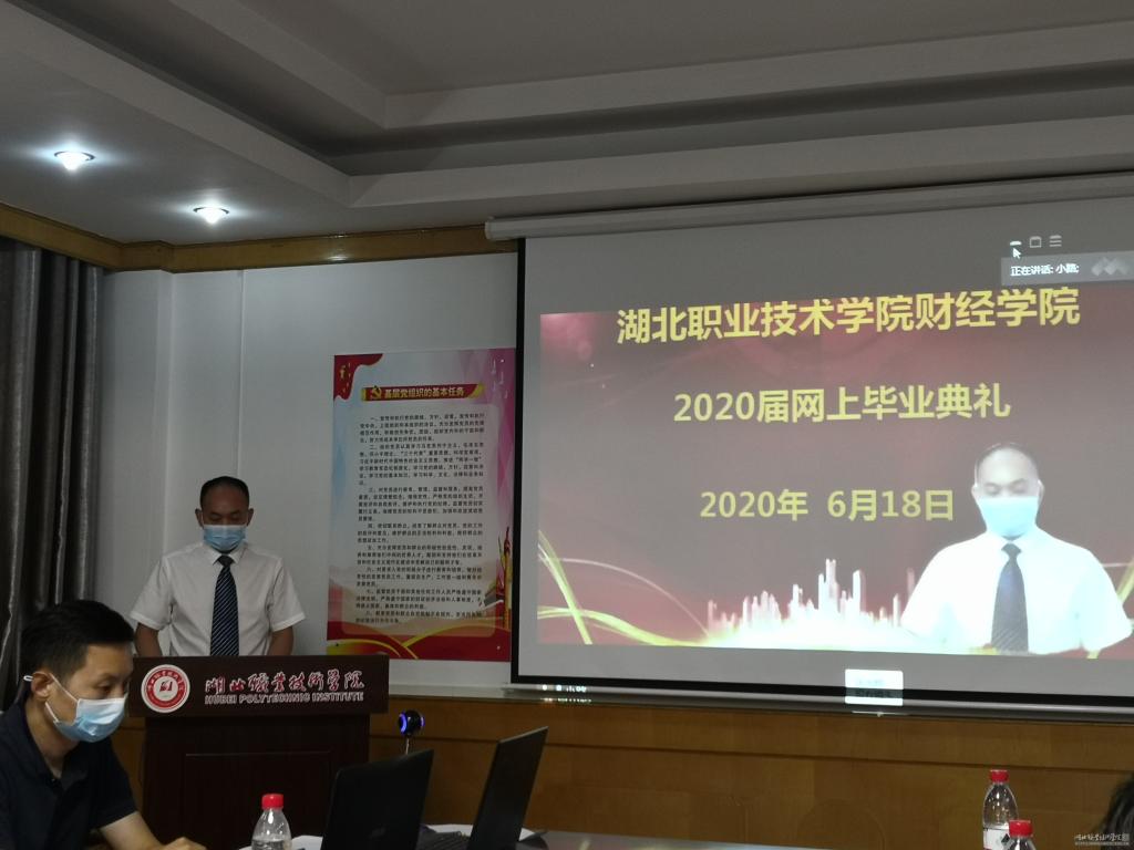 2020年6月18日晚上7点,文华楼2楼会议室举办了财经学院2020届毕业生网上毕业典礼,财经学院院长徐斌华率领管理团队参加了典礼仪式,财经学院全体2020届毕业生及部分班主任、教师代表在线上参与了此次活动。