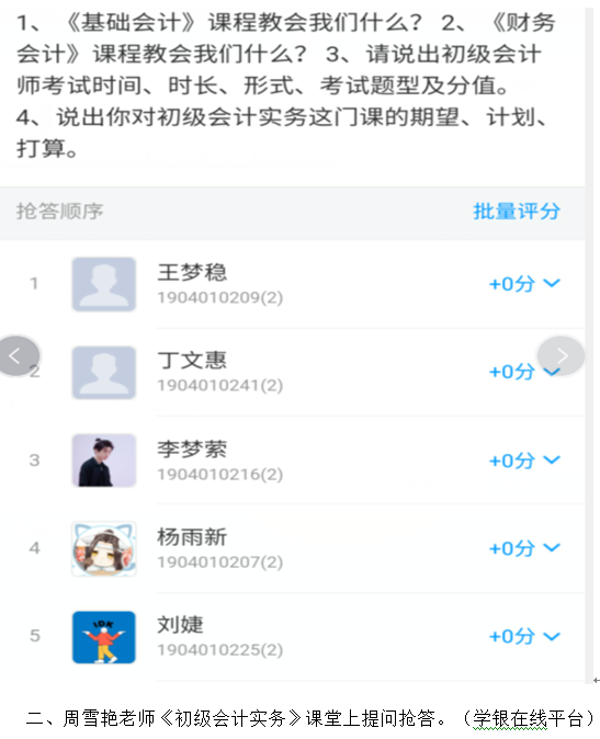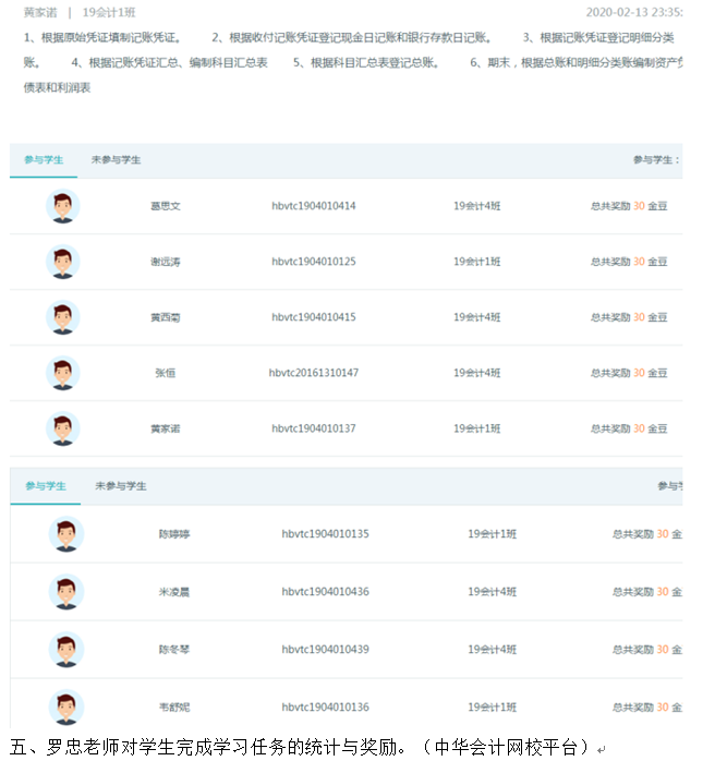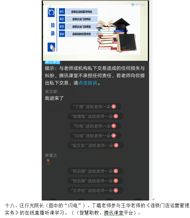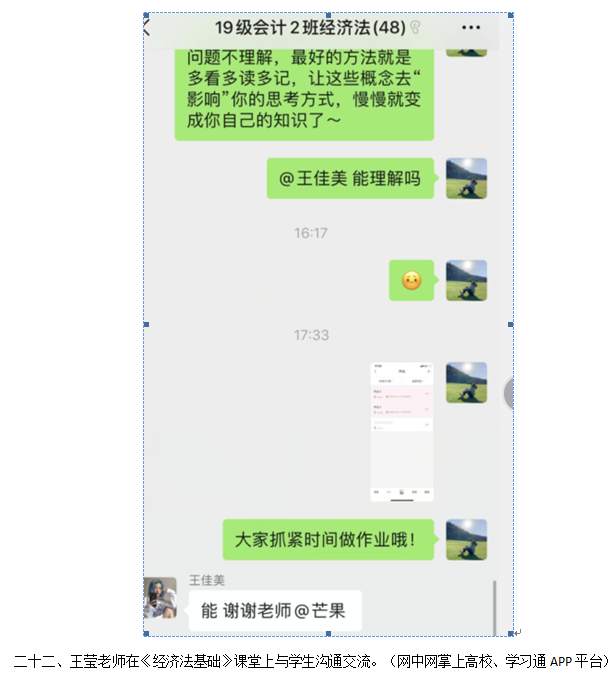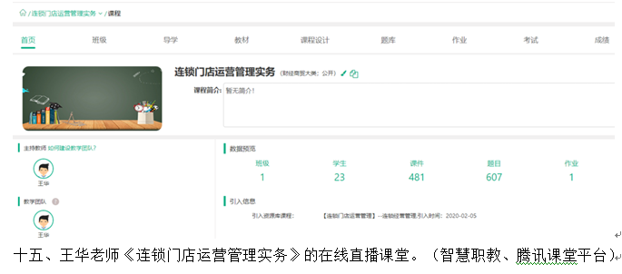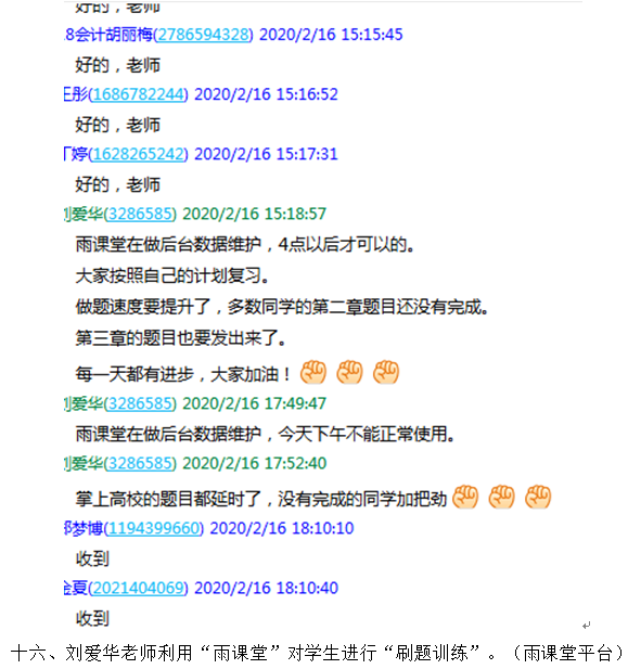 在新型冠状病毒肺炎期间,财经学院一方面非常重视疫情的防控,另一方面又非常重视关心学生的学习。在教务处的指导下,财经学院制定了《财经学院“停课不停学、离校不离教”在线教学实施方案》,成立了以徐斌华院长为组长,以汪行光、陈卫红、孙超三位副院长为副组长的在线教学质量保证领导小组,每一个院长联系一个教研室主任,牵头各教研室的专业课程线上教学工作。充分利用智慧职教、学银在线、腾讯课堂、中国大学MOOC、课堂派、超星尔雅、中华会计网校、网中网掌上高校、爱课程网、学习通APP、新道云等各种信息技术平台,充分利用学校在线开放课程、专业教学资源库、国家共享网络课程资源等大量教学资源,积极鼓励并组织老师们进行网络教学。截至今天,财经学院共有27位老师进行了40门课的网络教学,占本学院专业教师总人数的70%,切实做到“停课不停学、离校不离教”,让学生在家也能够轻松进行学习。