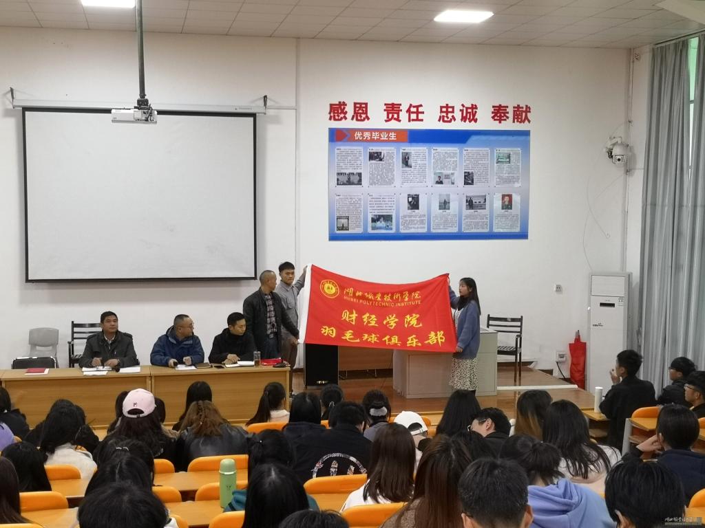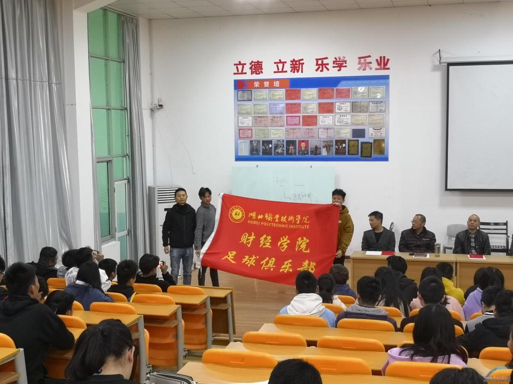 成立大会由财经学院学工办主任黄曙光主持,财经学院学工副书记孙超分别给李斌老师、田晓军老师、李蓓蕾老师颁发了羽毛球、篮球、足球俱乐部指导教练聘书,各指导教练分别给三个俱乐部进行了授旗。