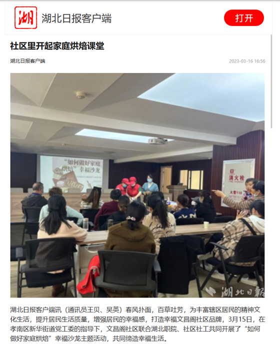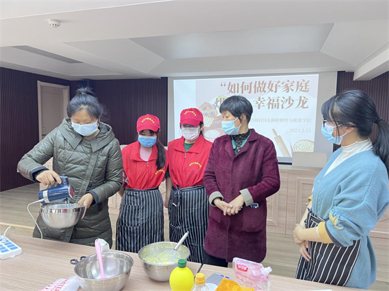 第一组师生志愿者前往文昌阁社区开展“如何做好家庭烘焙”幸福沙龙第一期培训活动。通过讲解烘培知识、现场指导制作戚风蛋糕、品尝美味糕点、分享烘焙心得,进一步提升学生志愿服务技能,增强居民生活幸福感。