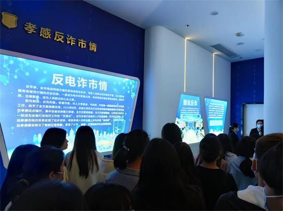 5月10日下午,在学校组织领导下,yl23411永利集团50名学生前往孝感市反电诈教育体验馆参加反电诈宣传教育活动。同学们在讲解员的引导下学习反电诈知识,沉浸式体验反诈小游戏,身处最真实的虚拟场景中识破电诈的行骗伎俩。