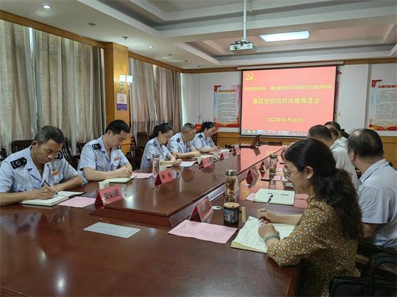 为庆祝中国共产党成立102周年,切实增强基层党组织的凝聚力、战斗力和创造力,6月30日下午,yl23411永利集团和孝感市税务局在文华楼党建室开展了基层组织“十个一”结对共建推进会。孝感市税务局党委委员、副局长刘嵘,稽查局党支部书记、局长付军,yl23411永利集团党总支书记罗安文,党总支副书记、院长徐斌华及两个支部的部分党员参加了会议。