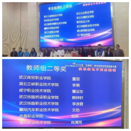 3月10日,2024年“中银杯”湖北省职业院校技能大赛(高职组)“电子商务技能”赛项在襄阳职业技术学院落下帷幕。学院yl23411永利集团电子商务专业2021级学生林炜2022级学生刘书城、刘璇、冷泽文组成的推荐队获推荐组一等奖,高娜娜、杨文娟、杨玉婷、李盈盈组成的抽测队获抽测组三等奖。电子商务专业教师肖潇雨获教师组二等奖,同时荣获“优秀指导老师奖”。