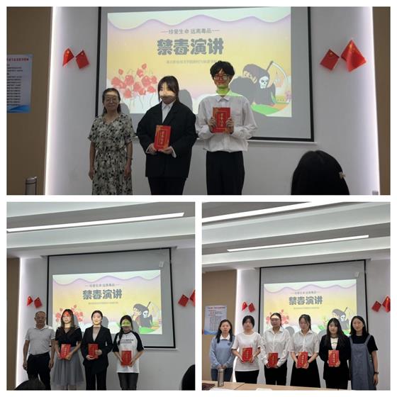 演讲现场气氛热烈、高潮迭起,参赛选手们精神饱满,纷纷发挥出超常的演讲水平,声情并茂、语言铿锵,用一个个鲜活案例、一组组沉重数据痛斥毒品的巨大危害,表达抵制毒品的坚定决心,呼吁同学们积极参加禁毒斗争,博得全场观众的阵阵掌声。经过激烈角逐,评选出一等奖2名,二等奖3名,三等奖4名。