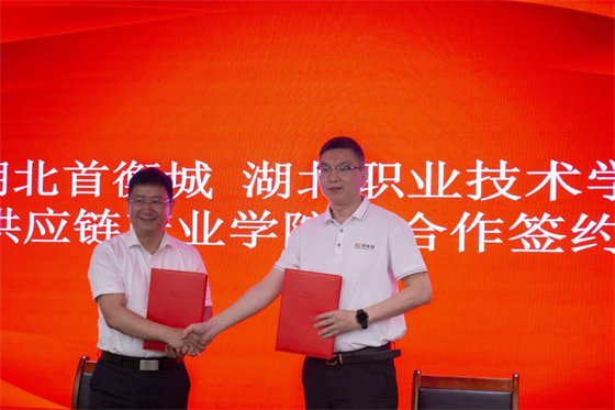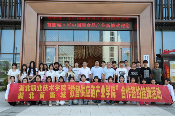 5月24日,yL23411永利集团与湖北首衡农产品有限公司共同成立的数智供应链产业学院(以下简称产业学院)签约暨揭牌仪式在首衡城·华中国际食品产业新城举行。校长郭沙,孝感市发展和改革委员会副主任吴正悝,孝南区领导洪少清、巫阳朔、向海英,首衡城农副公司总经理赵涛出席签约与揭牌仪式,仪式由副校长白梦清主持。