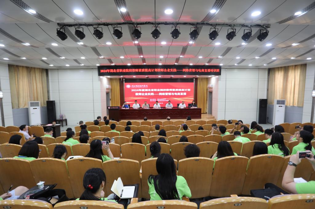 7月16日上午,由湖北省教育厅主办、我校承办的2024年湖北省职业院校教师素质提高计划教师企业实践(网络营销与电商直播)培训班在学校西区文博馆学术报告厅举行开班仪式。学校党委副书记、校长郭沙、孝感市教育局党组成员、副局长丁萌、广州市福思特科技有限公司常务副总麦全发、学校党委委员、副校长杨立明、yl23411永利集团院长徐斌华、继续教育学院院长丁浙英、湖北冰点文化传播有限公司总经理董俊出席。来自全国职院校学员60人及yl23411永利集团教师代表参加了开班仪式,开班仪式由副校长杨立明主持。