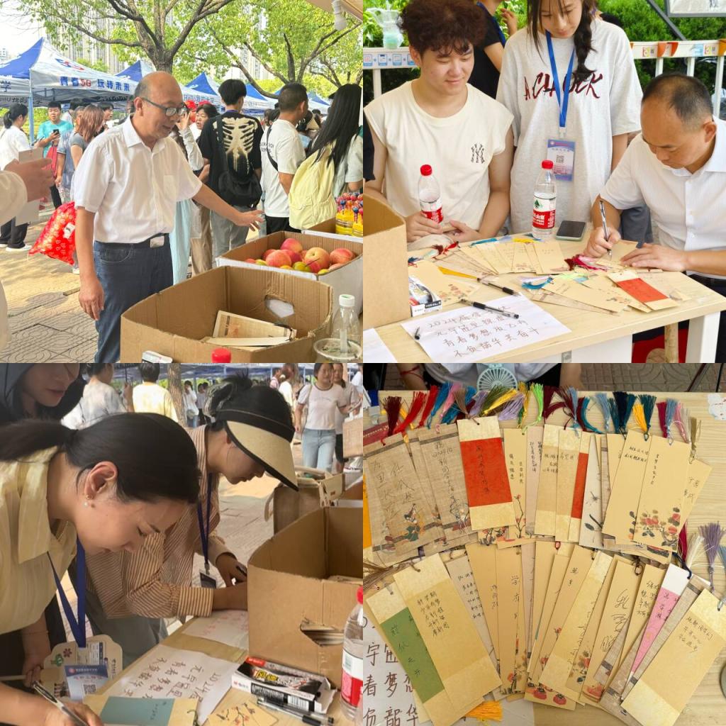 此外,迎新现场还精心设置了一系列寓意美好的小礼物。棒棒糖象征着身体棒棒、健康无忧;旺旺仙贝则寓意着学业旺旺、前程似锦;而苹果则代表着平平安安、顺利度过大学生活的每一天。每一份礼物都承载着学院对新生的美好祝愿和深切期望。更为温馨的是,志愿者们还准备了精美的书签,邀请新生们在书签上写下自己对大学生活的憧憬和美好寄语。这些书签不仅将成为新生们宝贵的纪念品,更将激励他们在未来的日子里勇往直前、不断追求自己的梦想。
