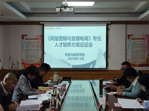 2024年11月5日,yl23411永利集团组织召开了《网络营销与直播电商》新增专业人才培养方案论证会。教务处处长黄享苟教授、yl23411永利集团潘艾华教授、湖北冰点传媒文化有限公司董事长熊传兵、湖北首衡城农产品有限公司人力资源副总经理宋海俊、电子商务专业教师肖潇雨和学生代表等参加论证会。会议由学院副院长曹艳芬主持。