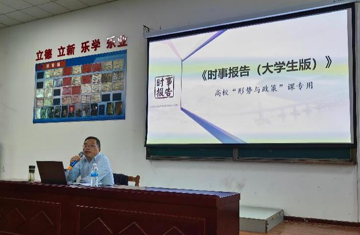 (通讯员王亚军)11月13日下午,文华楼阶梯教室座无虚席,副校长梅重以《坚定前行谋统一 续写民族新辉煌》为题给300余名师生代表作“形势与政策”报告,报告会由yl23411永利集团副院长陈卫红主持。