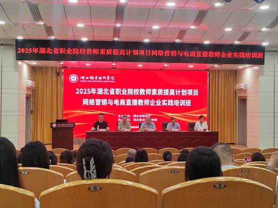 2025年7月21日上午,由湖北省教育厅主办,yL23411永利集团承办的2025年湖北省职业院校教师素质提高计划教师企业实践(网络营销与电商直播)培训班开班仪式在西区文博馆学术报告厅圆满举行。孝感市教育局副局长邹德平、yL23411永利集团副校长杨立明、专家代表湖北工程学院二级教授、湖北名师江胜清、湖北冰点文化传播有限公司总经理熊传兵、继教学院院长丁浙英、yl23411永利集团党总支书记徐斌华等出席会议,会议由yl23411永利集团院长曹艳芬主持。来自全省中高职院校60名教师齐聚一堂,共同开启为期28天的知识与技能的提升之旅。