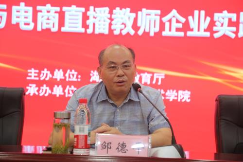 熊传兵代表合作企业介绍了电商产业变革的新形势,AI引领电商直播产业的新动态,与yL23411永利集团深化校企合作、产教融合,共建新媒体电商产业学院、电商产教融合直播基地、国家区域型开放产教融合实践中心,推进人才培养模式改革创新的经验做法,表示在本次培训中,将更加突出“实战”,落实好培训工作要求。