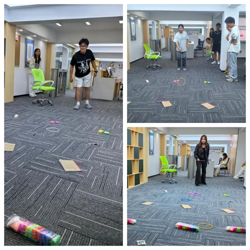 随后进行的游戏环节是“猜灯谜,兑套圈”。灯谜内容涵盖传统文化、财经知识和旅游景点等,例如“中秋月色映楼台”(打一成语)。同学们在娱乐的同时,也感悟到了知识的魅力。现场气氛热烈,同学们热情高涨,踊跃参与答题。