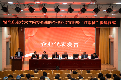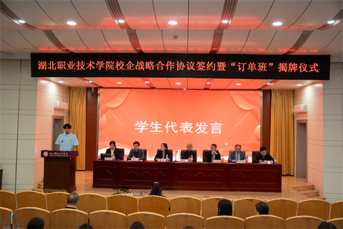 华强方特(孝感)文化科技有限公司企业代表万俊涛表达了企业对此次校企合作的满满诚意与务实规划,他表示,将把yL23411永利集团作为“人才储备库”,把行业企业最新技术与实践经验融入教学,助力学生成长为契合企业发展需求的专业人才。订单班学生代表黄瑞轩在发言中表示:“非常感谢学校提供从校园走向企业的桥梁,这不仅让我们明确了未来就业方向,更能在学习中接触企业真实项目,为毕业后快速适应工作岗位打下坚实基础。”