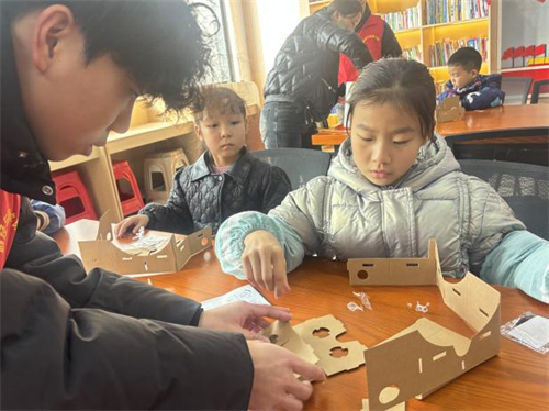 科技体验环节中,志愿者带领孩子们解锁VR世界的奇妙魅力。从VR的基础原理科普入手,延伸到其在医疗、教育、军事等领域的广泛应用,让孩子们了解科技如何改变生活。随后的DIY VR眼镜环节,孩子们在志愿者指导下,历经拆包装、装镜片、贴魔术贴、组装主体等9个步骤,亲手完成专属VR设备制作,感知科技从原理到产品的神奇转化。当孩子们将手机放入眼镜,沉浸式观看《最美中国》VR版、过山车、海底世界等特色视频时,现场欢呼声不断,科技的魅力在亲身实践中充分彰显。