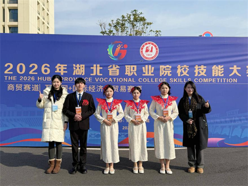 1月11日,2026年湖北省职业院校技能大赛商贸赛道(项)圆满落幕。本次大赛规模大、竞争激烈,来自商贸赛道27所中职学校、49 所高职院校的115支参赛队以及互联网+国际经济与贸易赛项44所高职院校86支参赛队同台竞技,经过三天激烈角逐,我校师生凭借扎实的专业技能、优秀的参赛作品与出色的现场展示,在商贸赛道(项)中成功斩获金奖3项、银奖1项,取得了历史性突破。其中:在商贸赛道中,许飞、方皓翔、李广恩、祖拜代·米尔阿迪力(指导教师:宋巍 张鑫),张诗涵、刘政烽、霍静怡、董陶芳(指导教师:李媛 肖敏晨)两支参赛队获金奖2个;在互联网+国际经济与贸易赛项中获得教师组(宗敏 杨继锐)金奖1个、学生组(唐家成、李洋、汪春禧、吴金涵)银奖1个(指导教师:胡凤 何莹)。