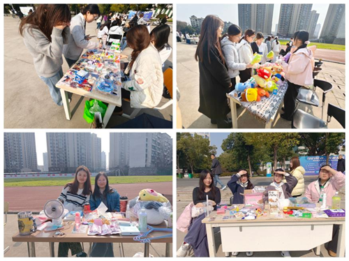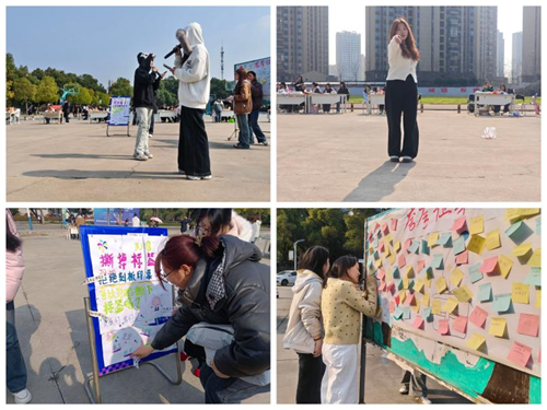 本次活动以“不被定义、自由成长”为核心,设置撕标签区、夸夸墙、风采舞台、 跳蚤市场四大特色板块,全方位展现女生才华与魅力。活动现场气氛热烈,各区域有序联动。在撕掉女性标签互动区,同学们果断撕下“女孩子要文静”“必须温柔”等刻板标签,用行动传递拒绝被定义的女性力量;女生夸夸墙上,便利贴写满赞美与祝福,温暖的话语让肯定与善意在笔尖流淌;歌舞风采展示舞台上,多才多艺的同学轮番登场,用歌声与舞蹈演绎青春自信;跳蚤市场上女生摊主们巧手陈列,让旧物焕发新生,“以物易物”使闲置流转为惊喜,让校园充满几分烟火气。