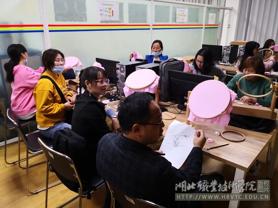 开班仪式上,徐斌华说明了开设汉绣选修课的重要意义,一是为了很好地传承中华传统文化,继承并发展这一国家级非物质文化遗产;二是为了陶冶学生的情操,磨炼意志,修身养性;三是艺多不压身,特别是“一村多名大学生计划”项目的学员,学好这门艺术为后期就业创业奠定基础。徐斌华要求全体学员,认真学习汉绣基本技法,虚心求教,勤学苦练,努力提升自己的艺术水平和综合素养。