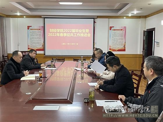 2021年12月11日上午,财经学院在文华楼二楼会议室召开2022届毕业生暨2022年春季征兵工作推进会,部署了毕业生就业工作和进行了2022年春季征兵工作动员,全体毕业班辅导员参加会议。财经学院副书记孙超同志对一村多毕业生就业方案填报进行了专题辅导培训。