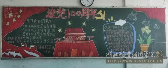各个班级选取1-2个主题,收集相关党史资料,并以绘画与文字相结合的形式,生动形象地展示党史主题故事,十几个班级贯穿起来构成了中国共产党波澜壮阔的发展简史。