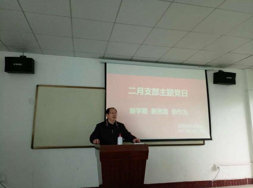 (本网讯)2月22日下午,财经学院党员教师集体在401教室参加了新学期的首次主题党日活动。活动主要围绕财经学院新学期的工作思路和要点展开讨论,副院长张银平主持了本次活动。活动中,院长卢珍宏,副院长张银平、喻靖文分别汇报了自己对于新学期的工作思路,随后支部成员就外派教师学习、社会培训、学院创收等问题展开了热烈讨论,充分体现了党员骨干教师在学院发展问题上的责任感和带头意识。